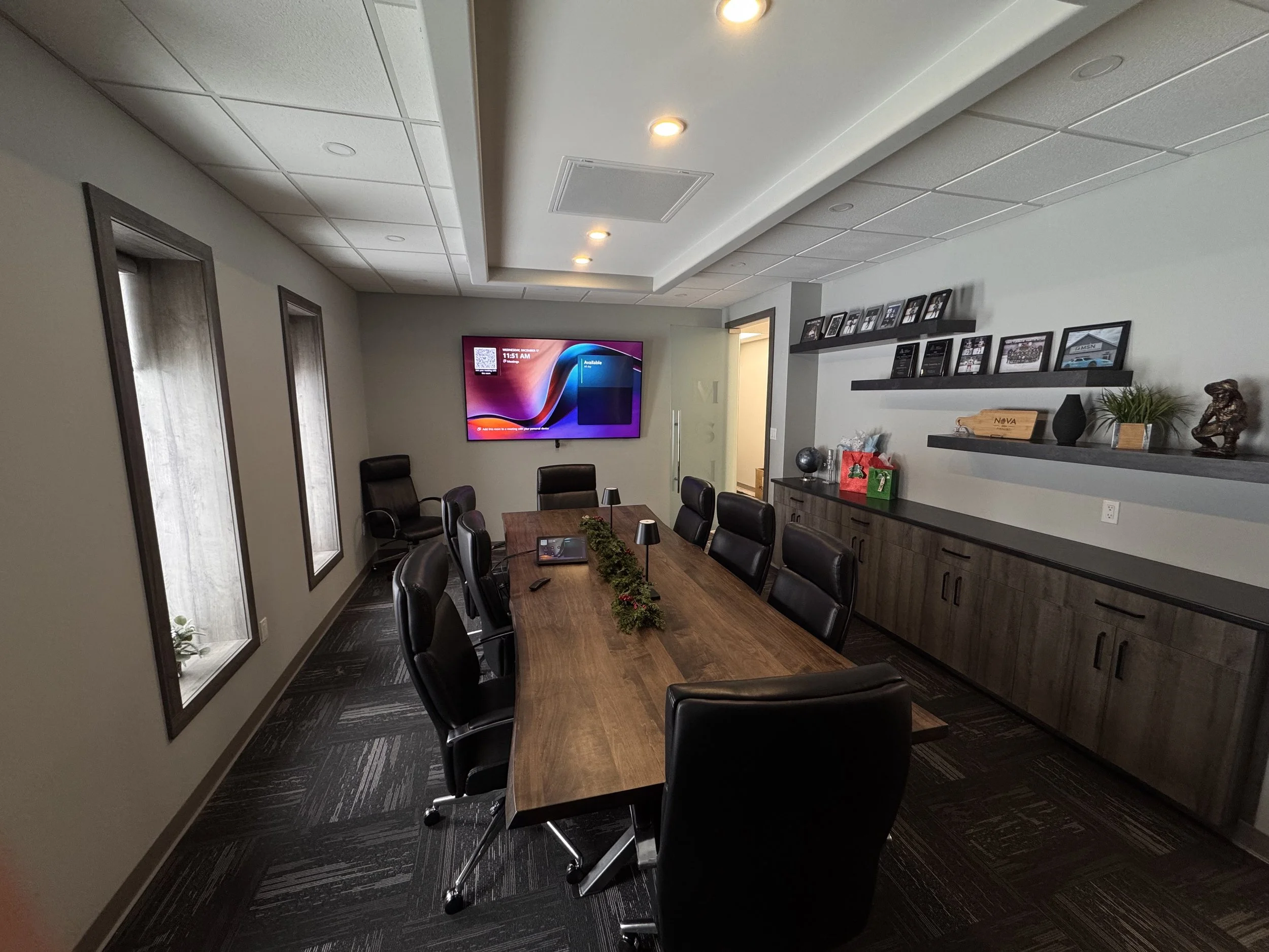 This Teams Rooms system gives top-tier audio and a polished, professional look for your boardroom. This ceilling mounted Ceilling/Speaker array blends into the room. A High-resolution camera match the room finishes and all cables are concealed for clean sightlines. The result is a powerful, easy-to-use meeting space where technology enhances meetings without drawing attention.